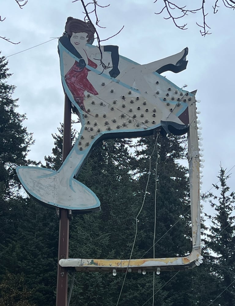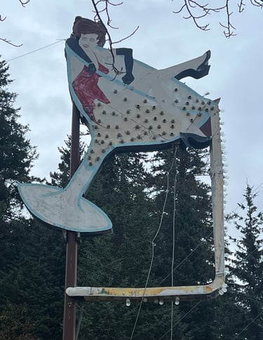 In 1981 Dennis & Davorie Kowalski bought The Pit Bar and owned if for 23 years. We were told that the famous exterior sign of the lady in red sitting in a martini glass was actually a gift that Dennis gave to Davorie. The lady in the glass is supposed to be Davorie.